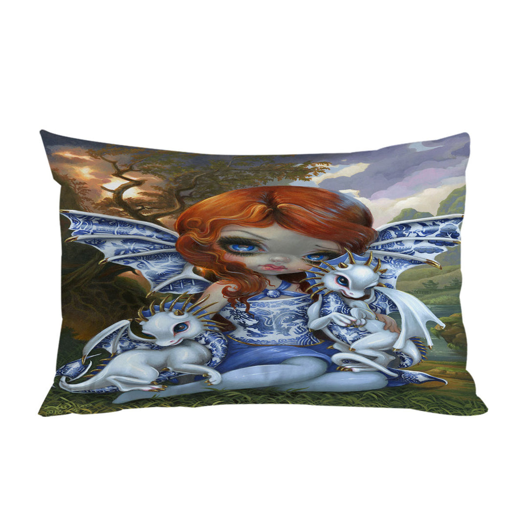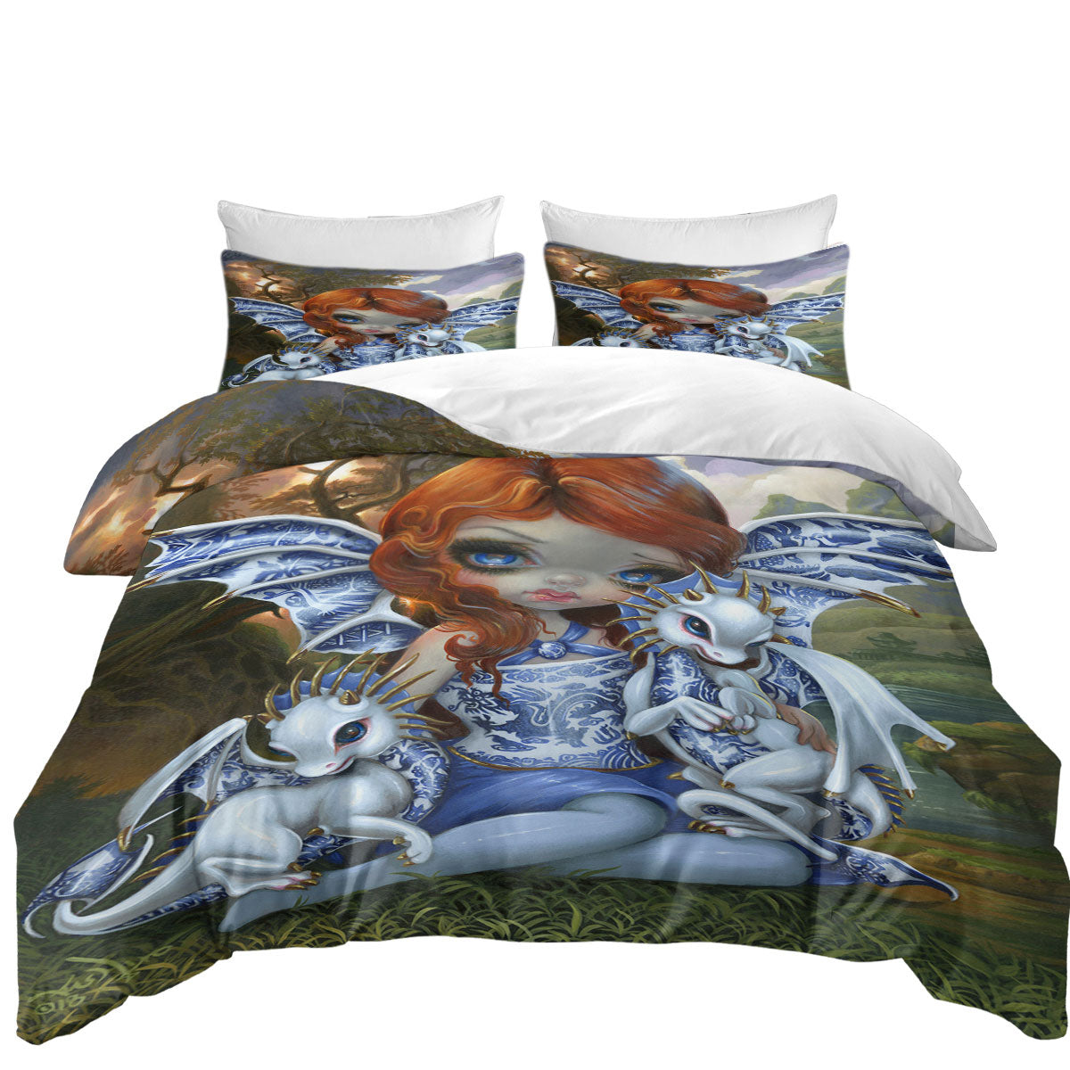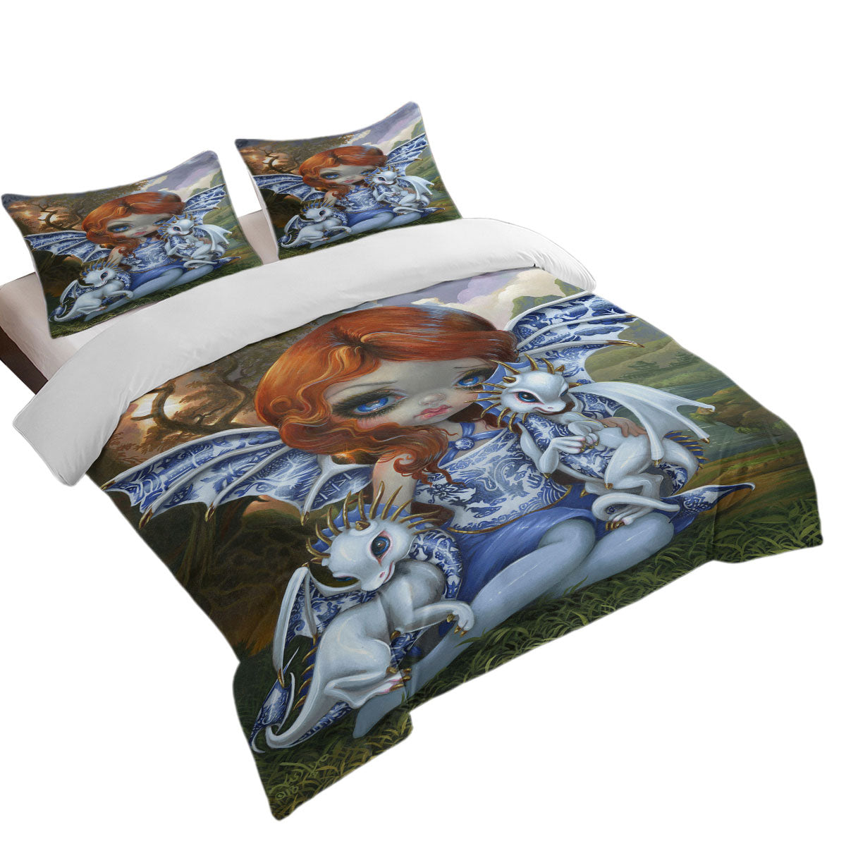 Blue Willow Dragonlings Redhead Dragon Fairy Duvet Cover
