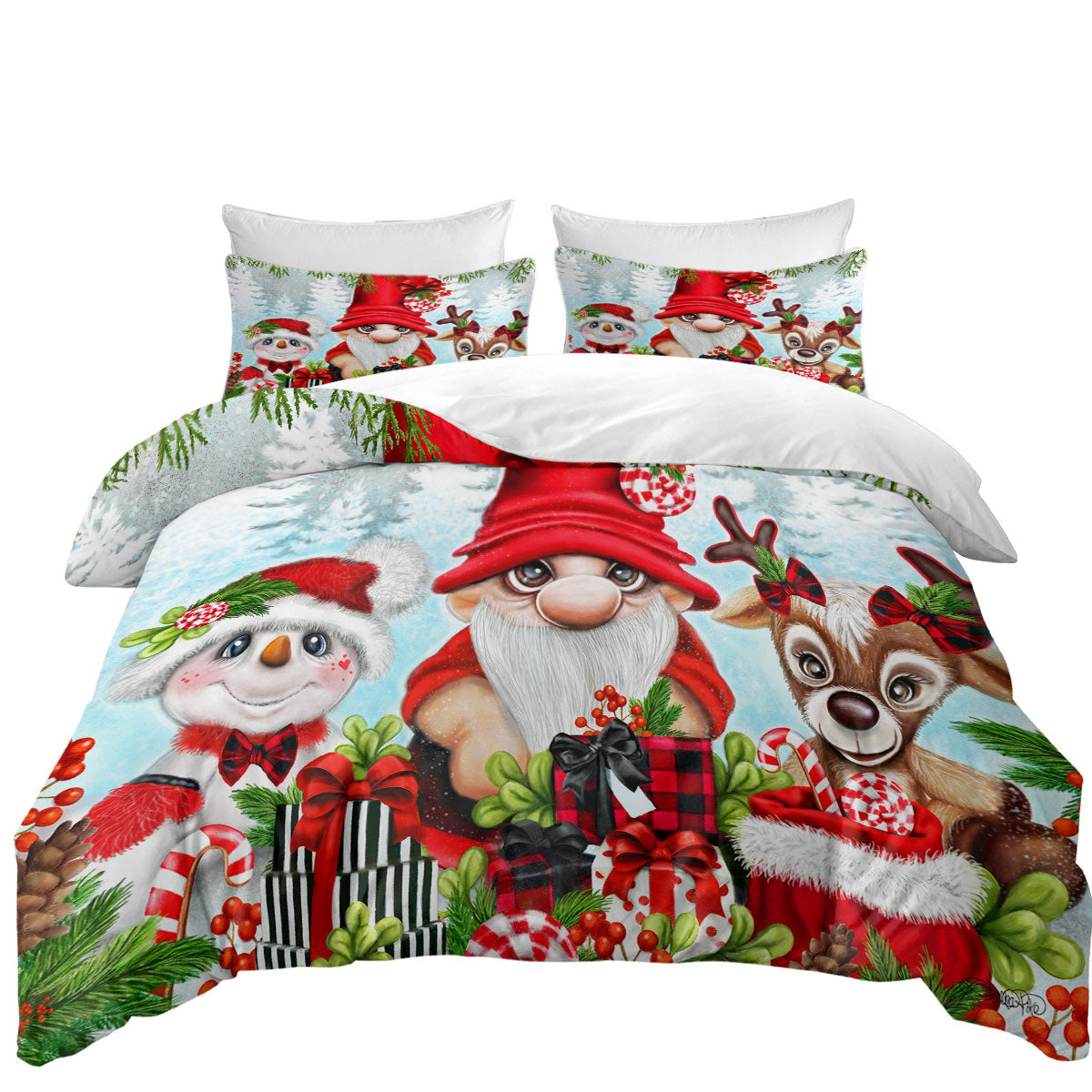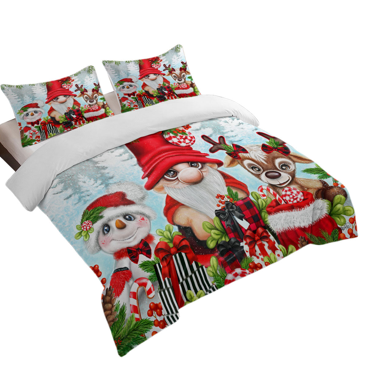 Christmas Gnome Snowman and Reindeer Duvet Cover