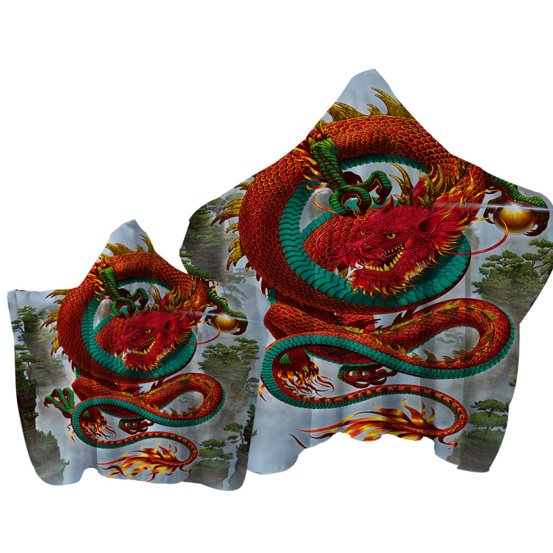 Cool Fantasy Good Fortune Red Chinese Dragon Towel with Hood