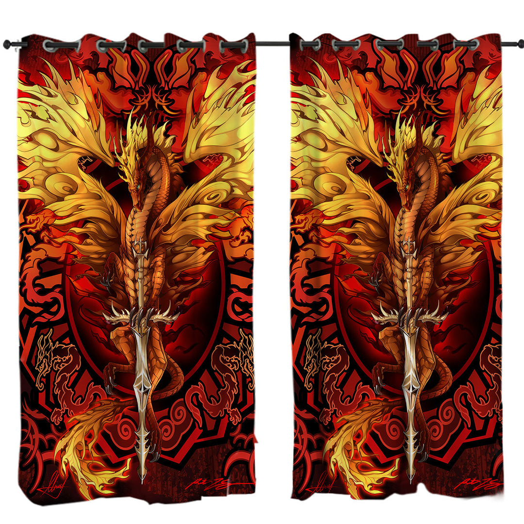 Cool Fantasy Sword Weapon Dragon Flame Blade Curtain