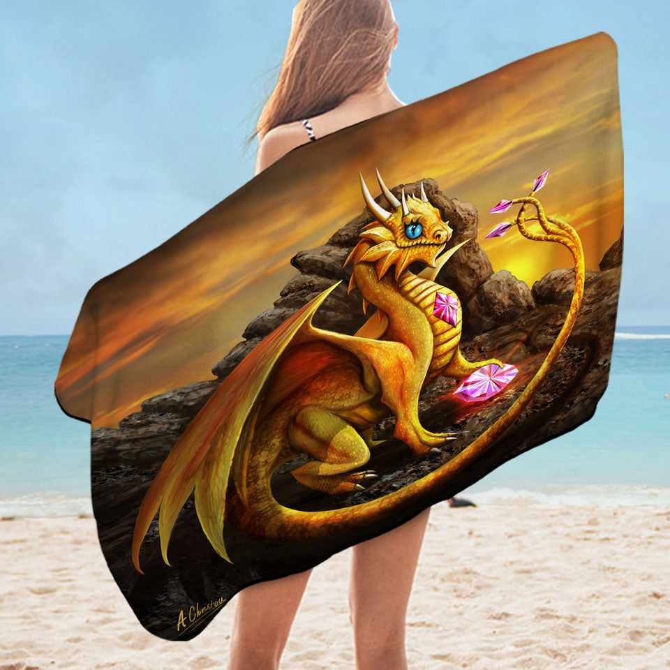 Cute Girly Golden Dragon Microfiber Beach Towel