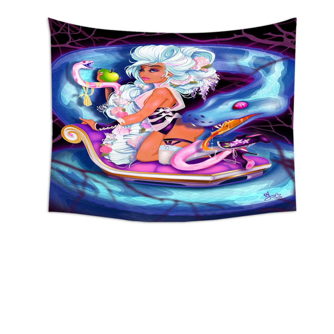 Dark Background Sexy Woman the Charming Snake Tapestry