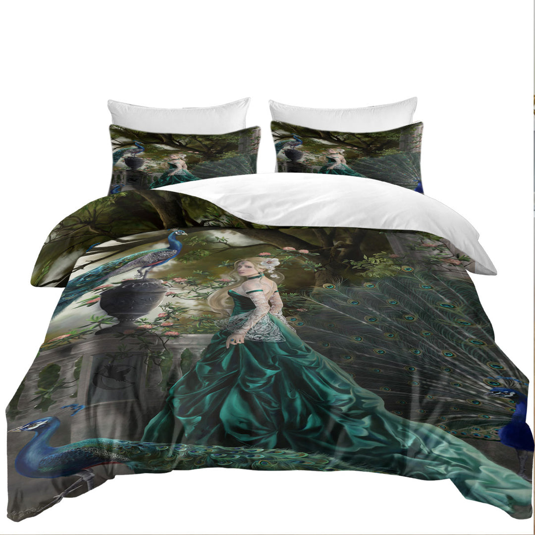 Emerald Fantasy Peacocks and Princess Duvet Cover