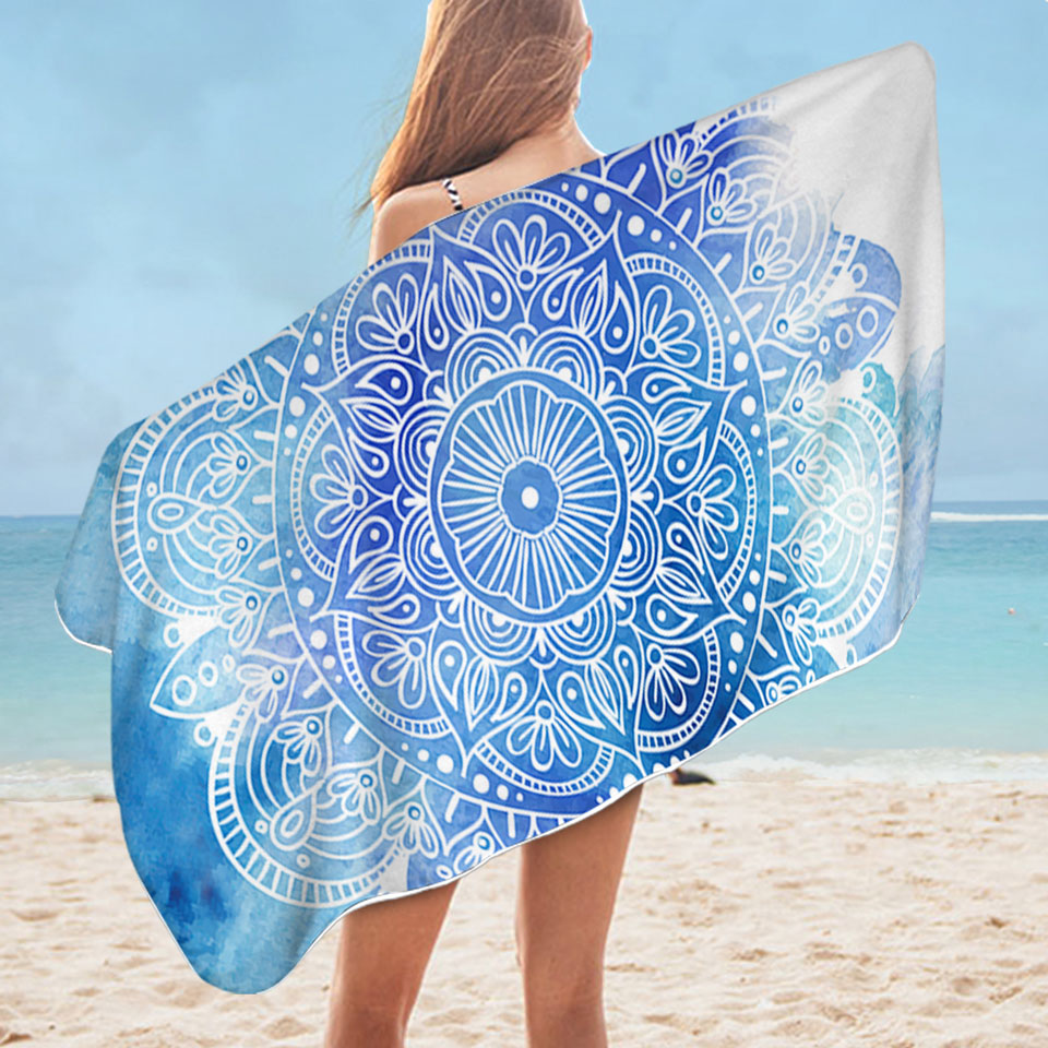 Fading Blue Purple Mandala Microfiber Beach Towel