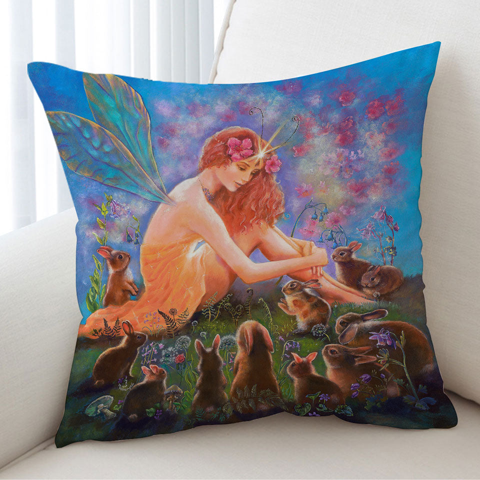 Fairy Tales Art the Fairy and the Velveteen Rabbit Throw Pillow