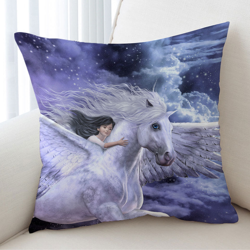 Fantasy Art Cute Girl Riding Flying Horse Throw Pillow