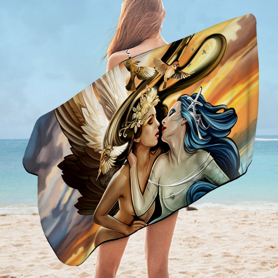 Fantasy Sexy Art Where the Sea Touches the Sky Microfiber Beach Towel