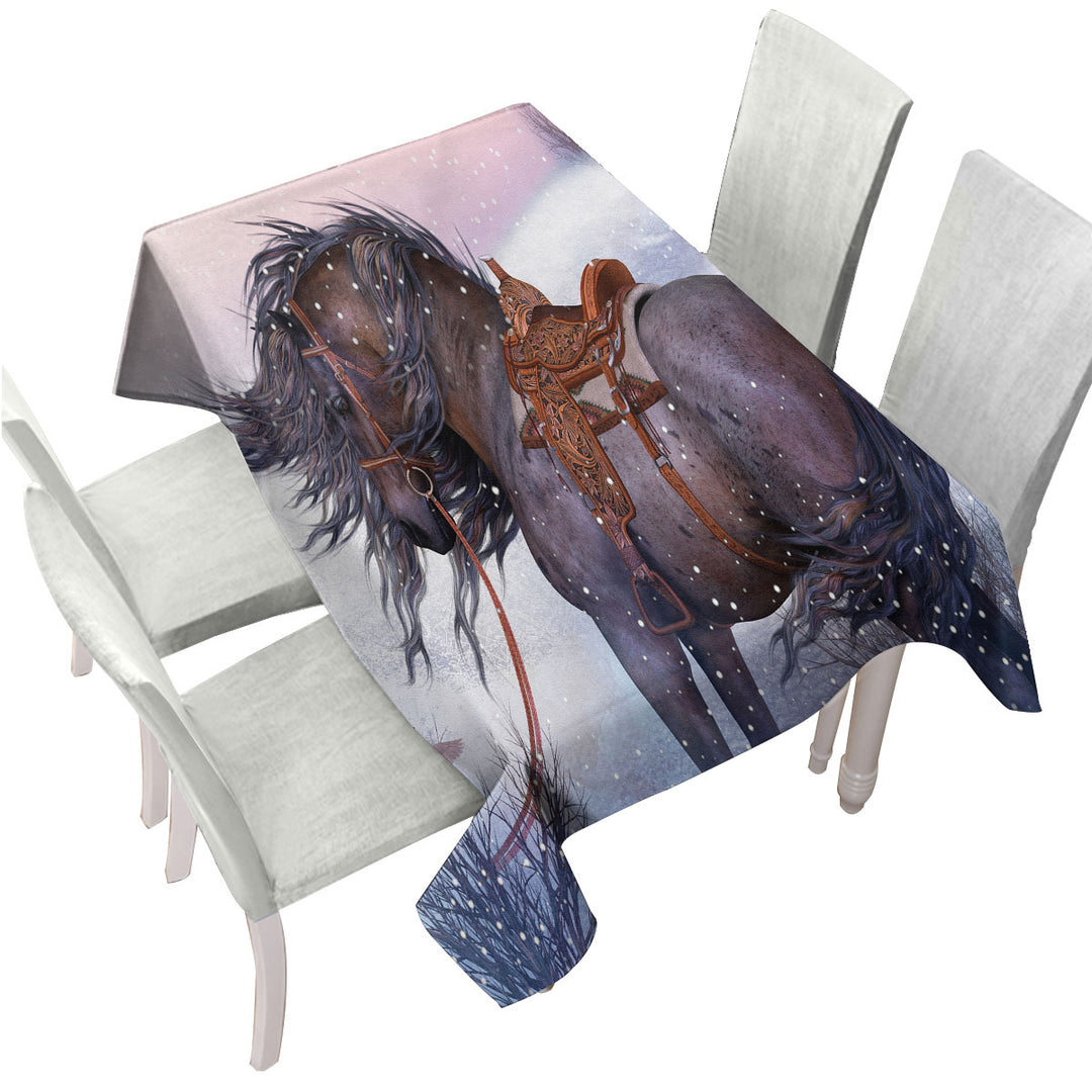 Horses Art Honorable Brown Horse in Winter Snow Tablecloth