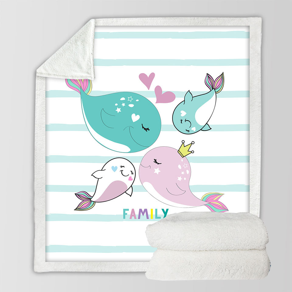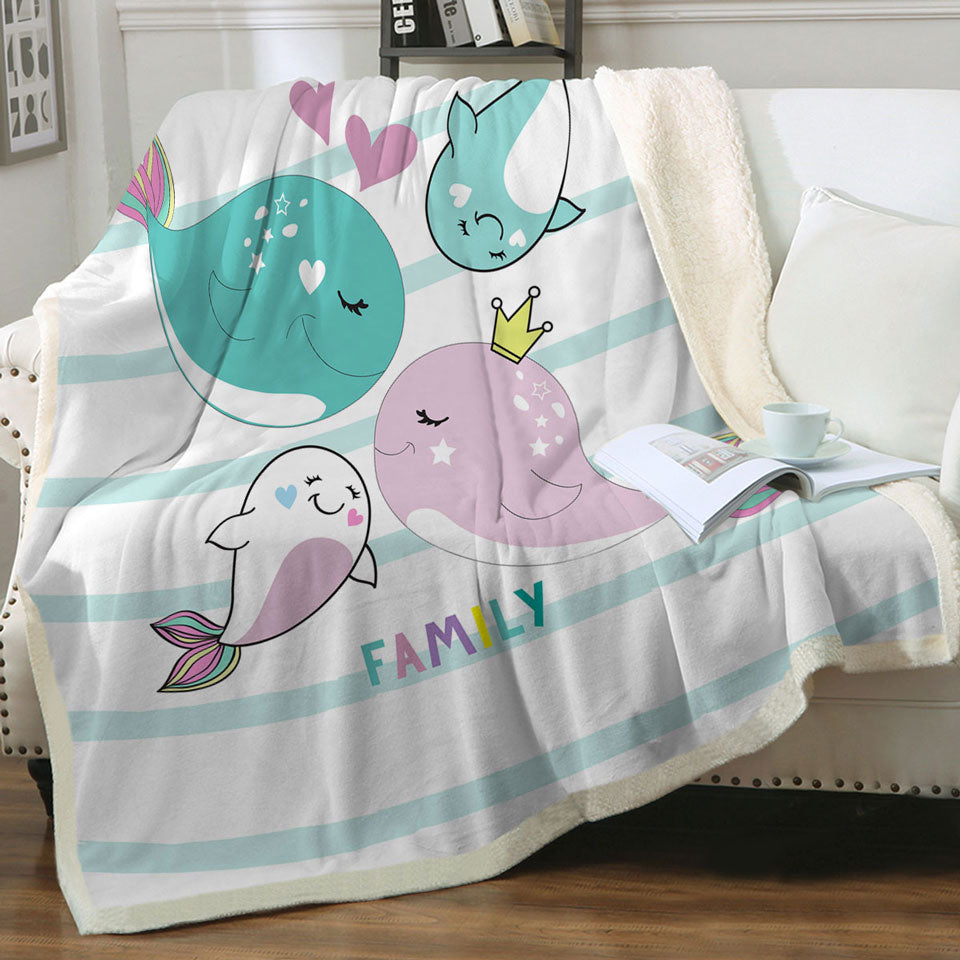 Kids Design Cute Whale Family Throw Blanket