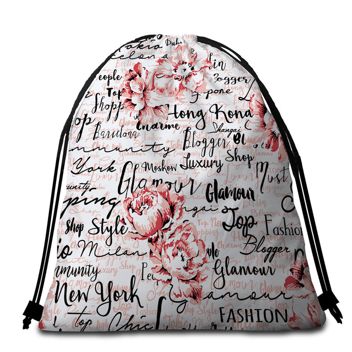 Luxury Glamour Roses Beach Towel Bags