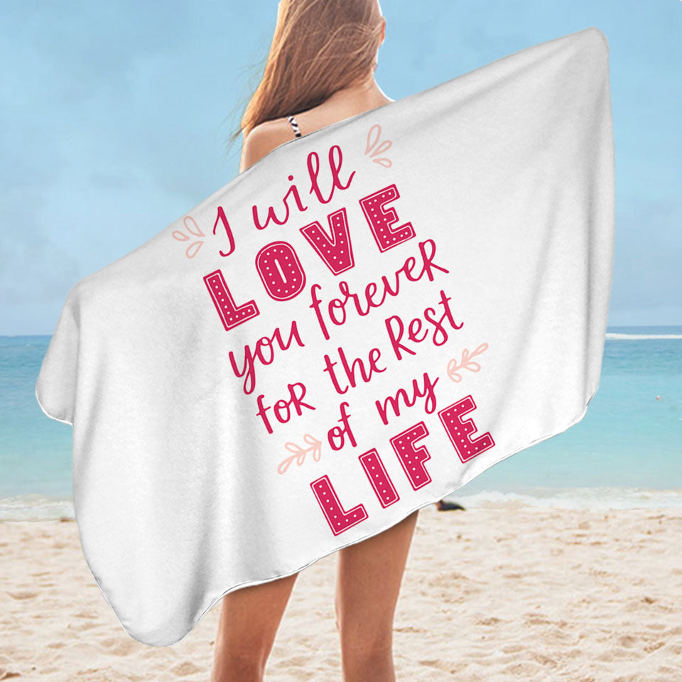 Pink Romantic Love Quote Love You Forever Microfiber Beach Towel