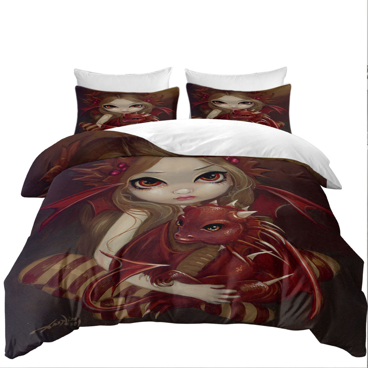 Sienna Dragonling Cute Fairy and Baby Dragon Duvet Cover