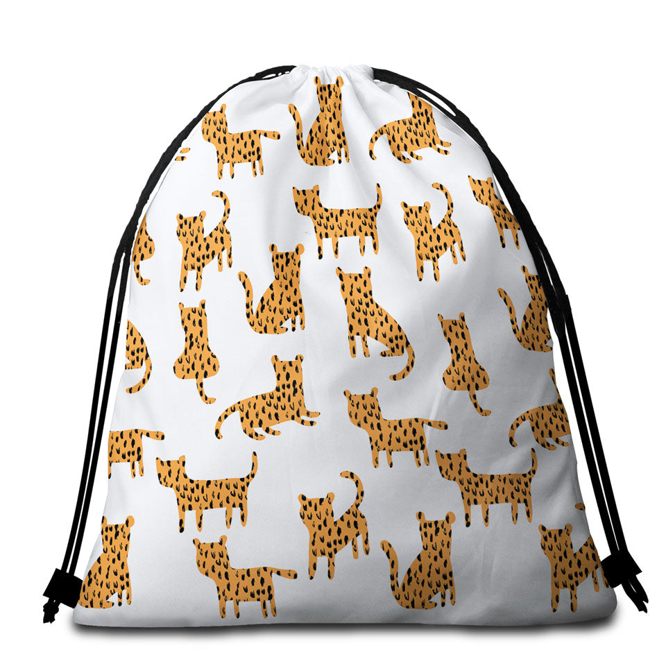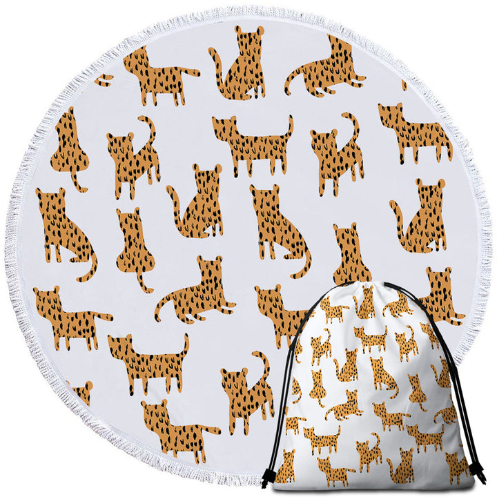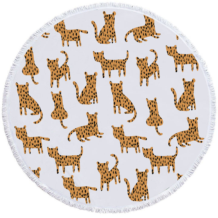 Simple Cheetah Cute Drawing Pattern Round Beach Towel