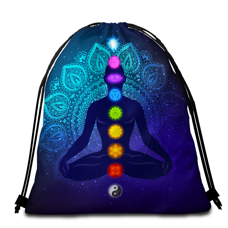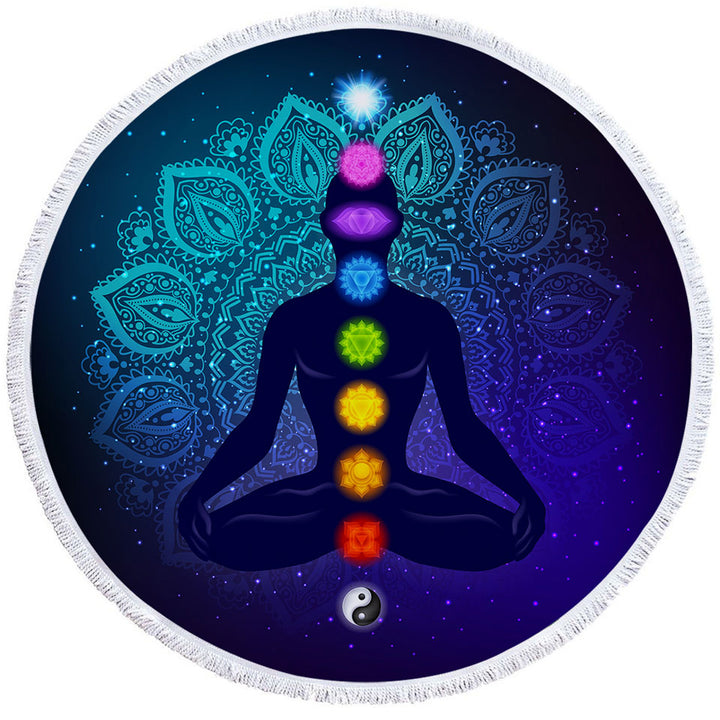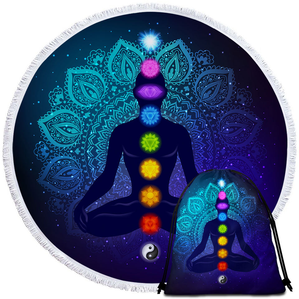 Spiritual Buddha and Oriental Mandala Spirit Round Beach Towel