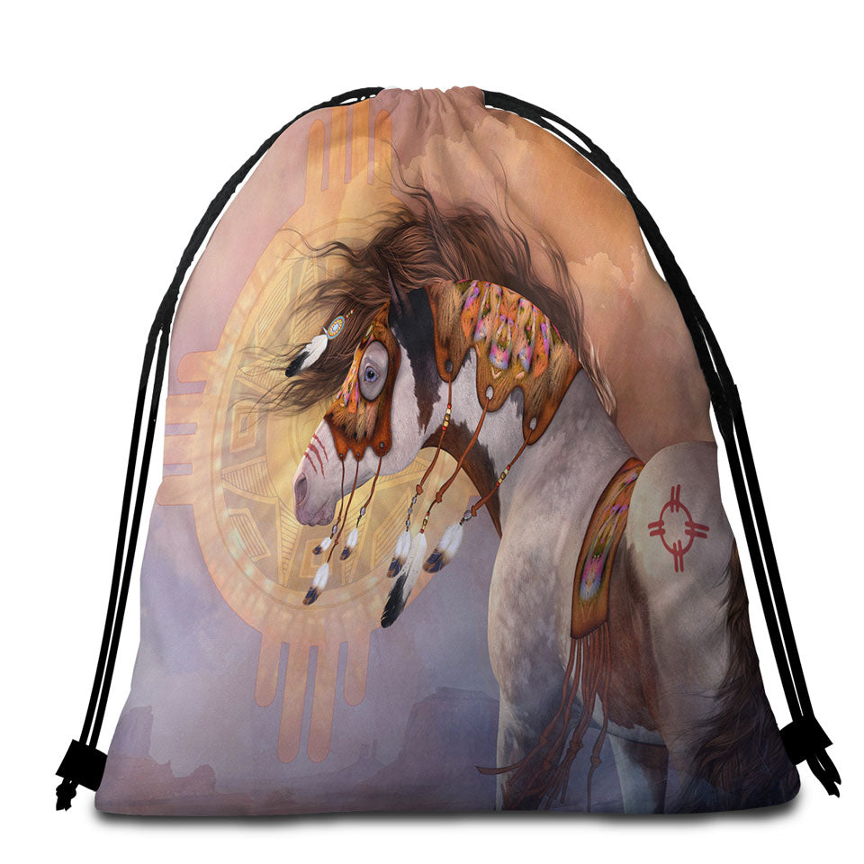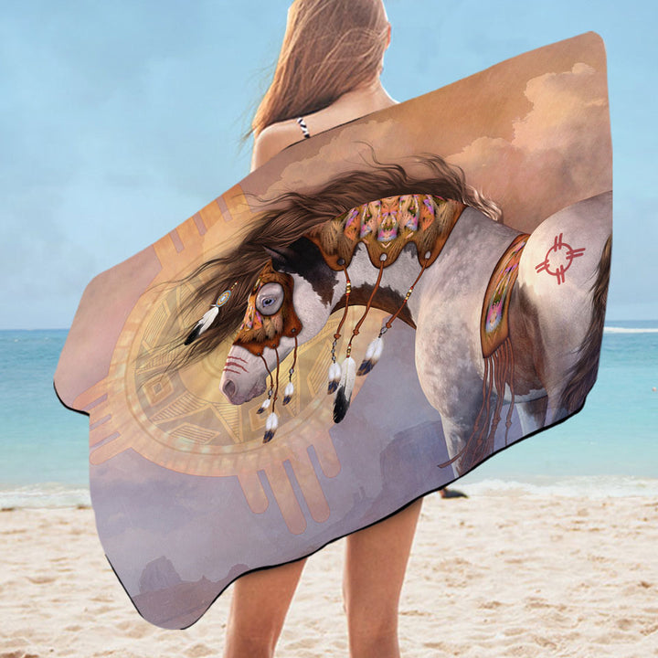 Sun Catcher the Native American Horse Microfiber Beach Towel