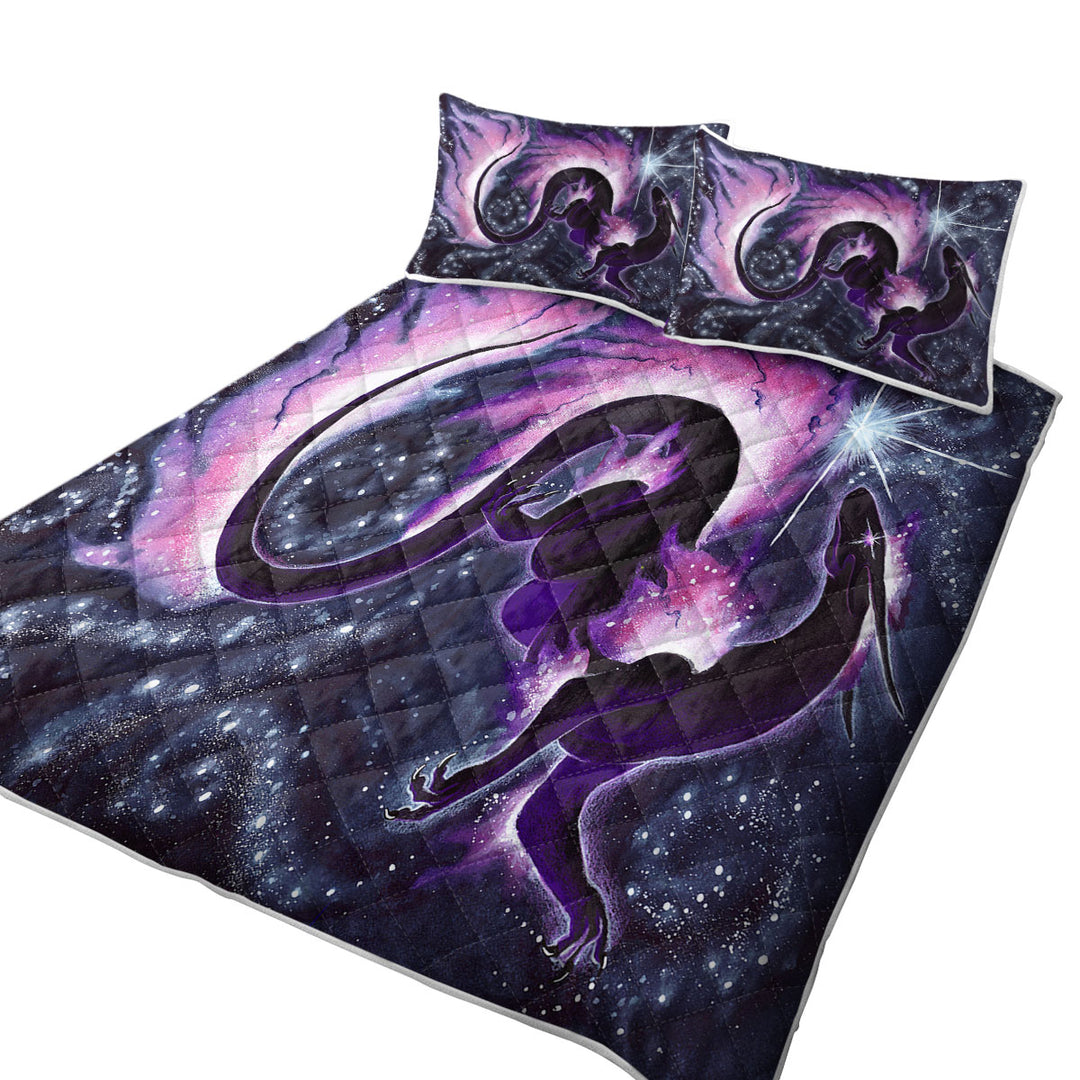The Star Dancer Fantasy Art Purple Galaxy and Dragon Quilt