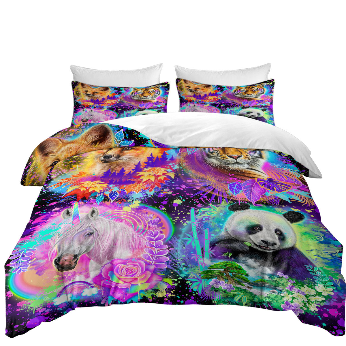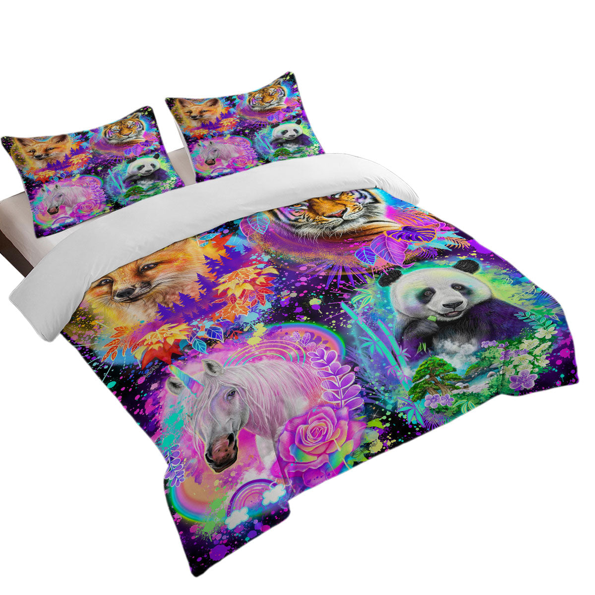 Tiger Fox Panda Unicorn Animal Spirits Collage Duvet Cover