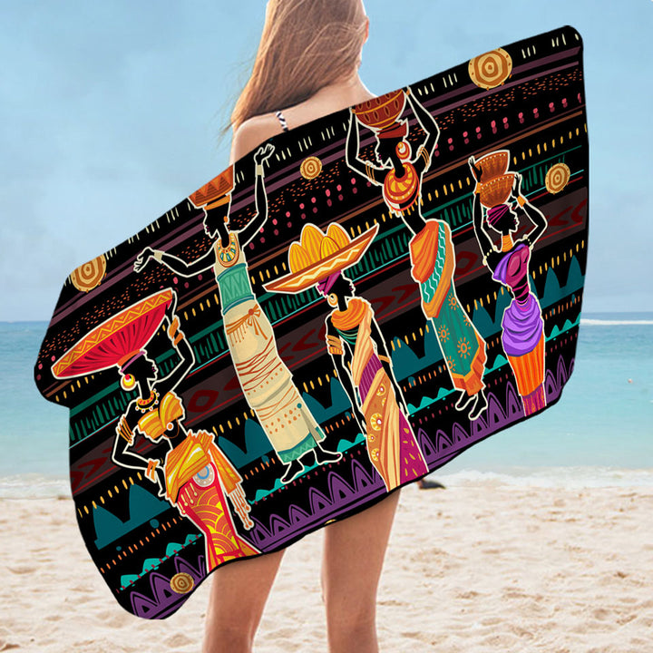 They also can be set up with a lightweight drawstring bag that features the same beautiful design as the beach towel.
