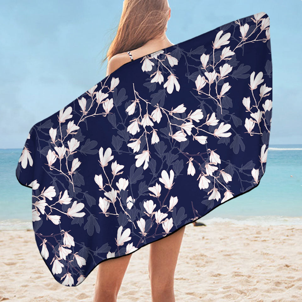 White Flowers and In the Dark Flowers Microfiber Beach Towel