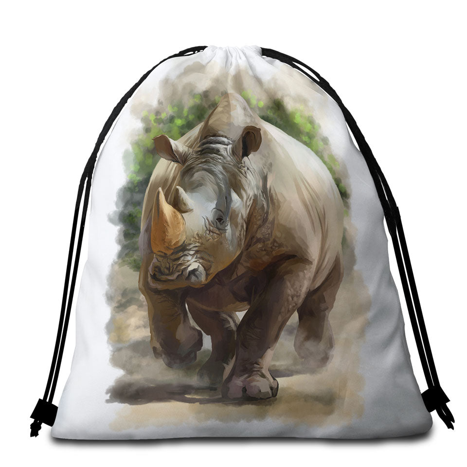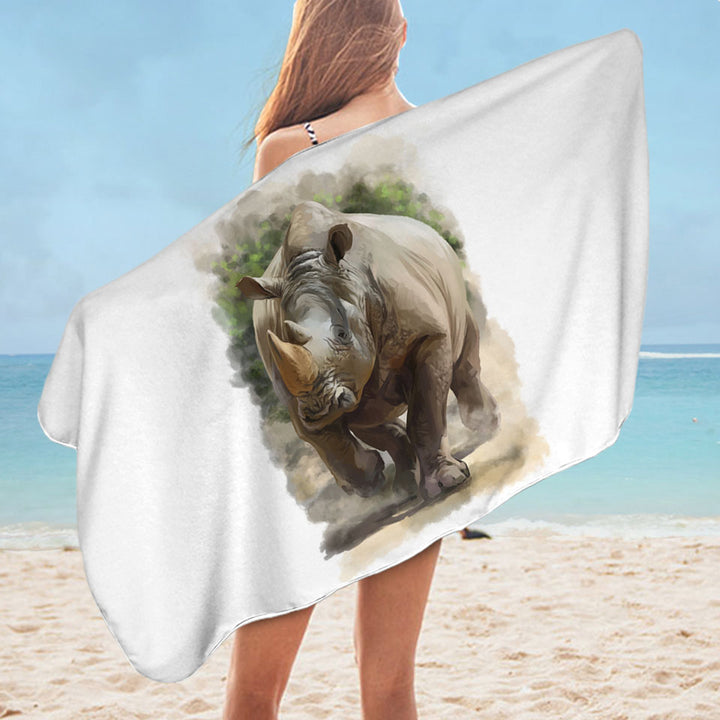 Wildlife Art Painting Rhino Microfiber Beach Towel