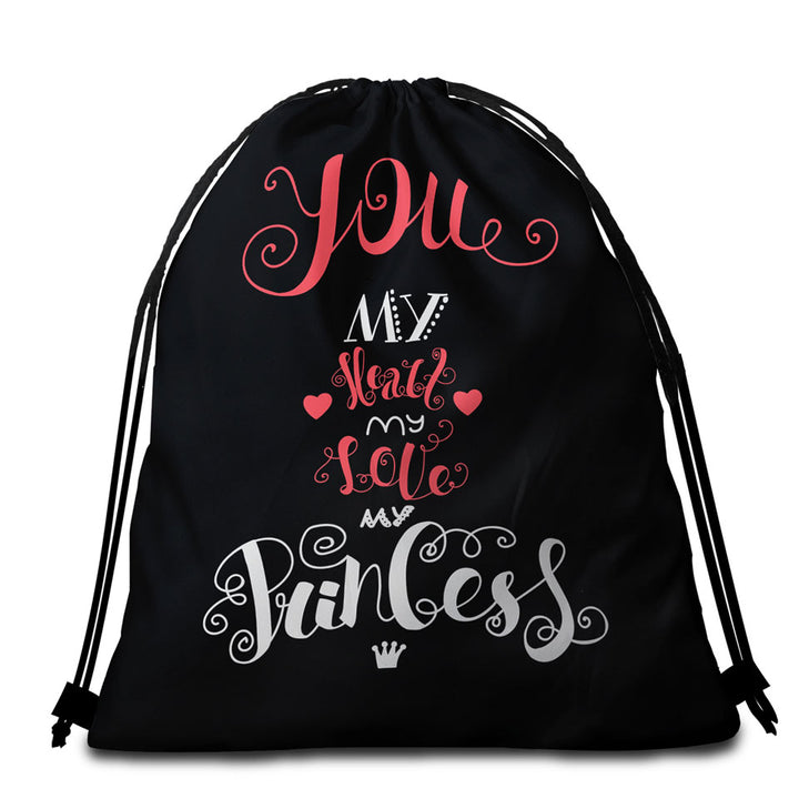 You my Heart my Love my Princess Romantic Quote Round Beach Towel